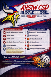 Are you ready to positively impact the students of AHSTW Community School District? If so, we have just the position for you in the area of teaching and coaching.