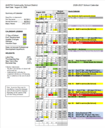 The AHSTW Community School District Board of Education will host a public hearing on Wednesday, April 22, 2026 at 6:00 PM in the AHSTW CSD Elementary Library. The topic of the hearing will be to take comments on the 2026-2027 School Calendar.