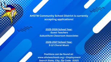 AHSTW CSD is currently accepting applications for a guest teaching and para-professional positions.