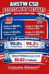 As we continue to review our assessment data for the 2024–2025 school year, we are excited to share the results highlighted in the graphic. It is wonderful to see the positive impact of AHSTW’s teaching and learning efforts on student achievement. Congratulations to our students, staff, and community on this success!