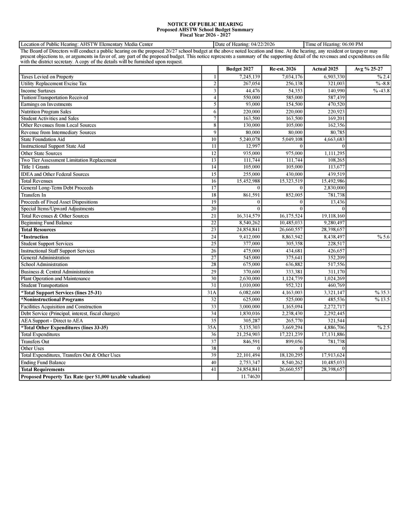 FY27 Budget Public Hearing Notice